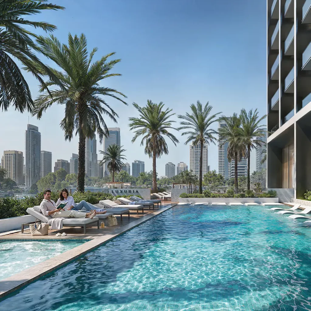 Location: Binghatti Luxuria is strategically positioned in Jumeirah Village Triangle (JVT), District 4, providing a peaceful, walkable environment. Its location at a vital transit node offers rapid access to major arterial routes, including Sheikh Mohammed bin Zayed Road (E311) and Al Khail Road (E44), ensuring residents are perfectly connected to Dubai’s primary destinations.